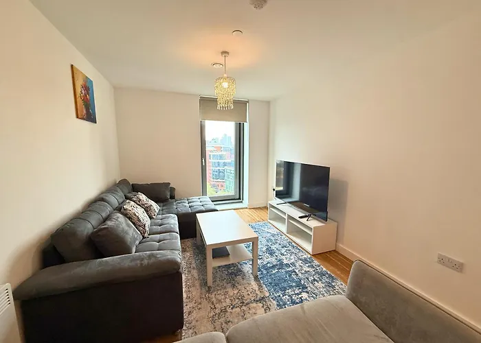 Im Stadtviertel Salford gelegen, bietet das 46 m² große Mediacity One Bedroom Skyline Flat Parkplätze und moderne Annehmlichkeiten wie WLAN. Messegelände EventCity ist rund 3 km vom Apartment entfernt, während BBC Manchester 7 Gehminuten von hier entfernt liegt.